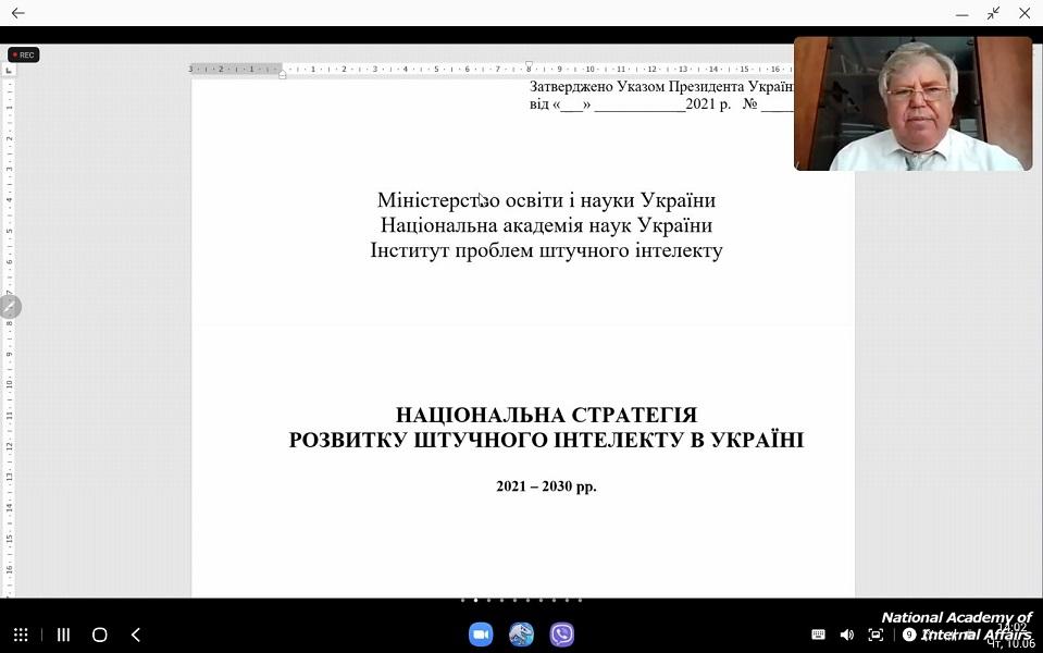 Starting the scientific event, Anatoliy Shevchenko, Director of the Institute of Artificial Intelligence of the Ministry of Education and Science and the National Academy of Sciences of Ukraine, Head of the Scientific Project of the Ministry of Education and Science of Ukraine "Strategy for the Development of Artificial Intelligence in Ukraine" presented the draft National Strategy for Artificial Intelligence in Ukraine for 2021-2030.