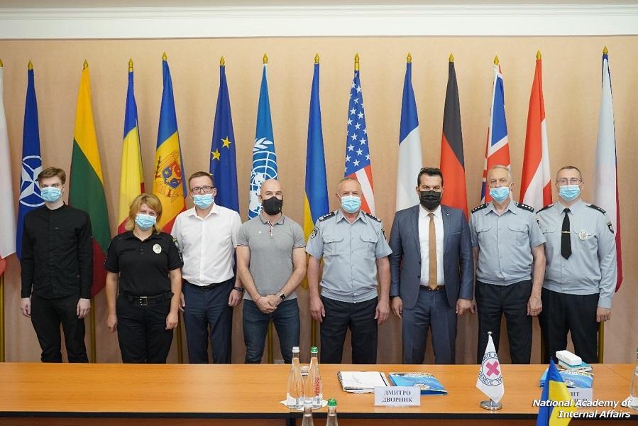05-08-2021On August 4, the National Academy of Internal Affairs hosted a working meeting with the delegation of the International Committee of the Red Cross in Ukraine consisting of the Regional Delegate for Work with the Police and Security Agencies Halit Bulanikli and Project Manager Dmytro Dvornik.