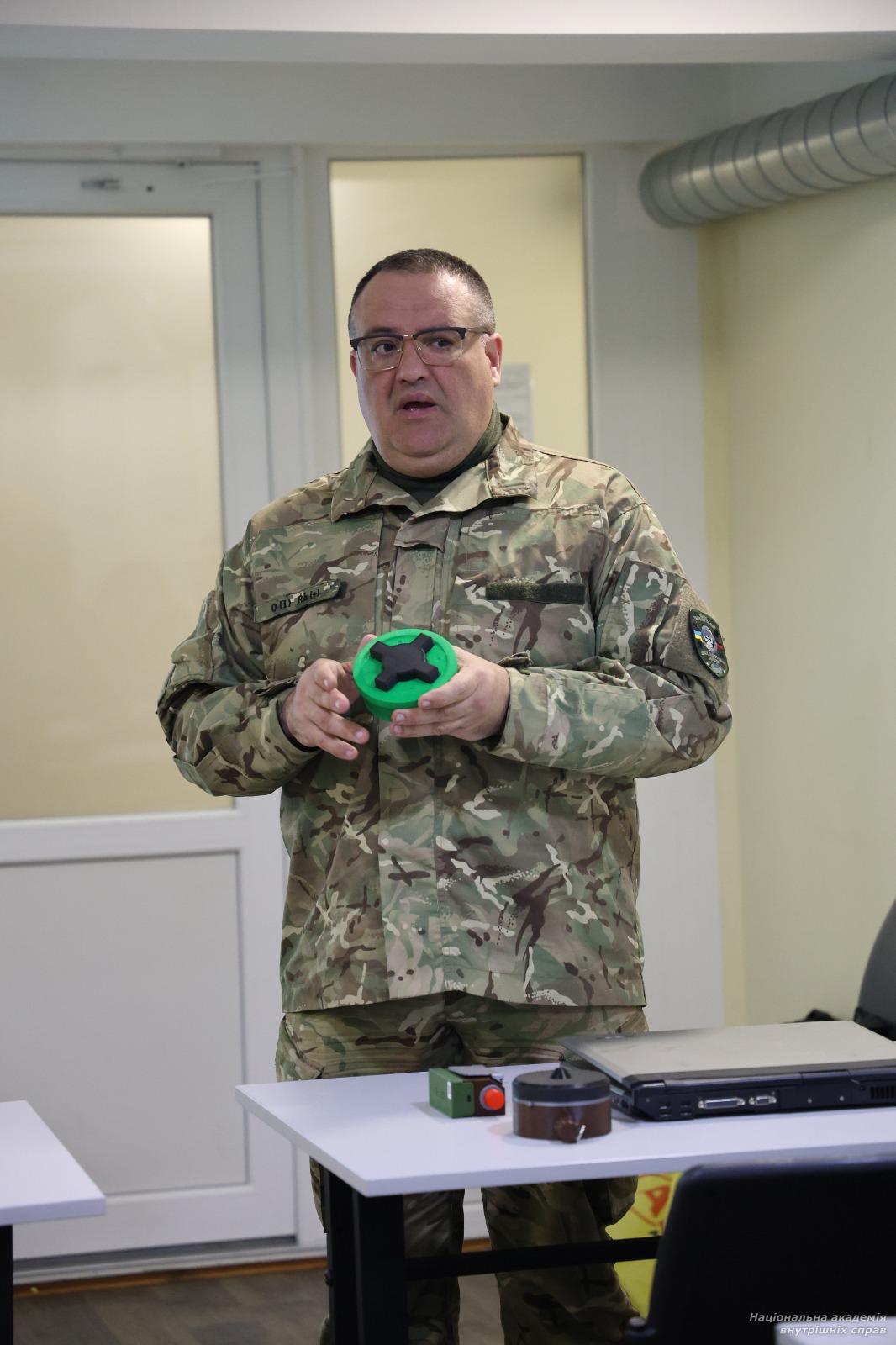 Заняття провели викладач Володимир Краснощок разом з інструктором Максимом Мазуром — ветераном та учасником бойових дій, представники циклу підготовки саперів (Центр розмінування) Київського центру первинної професійної підготовки «Академія поліції».