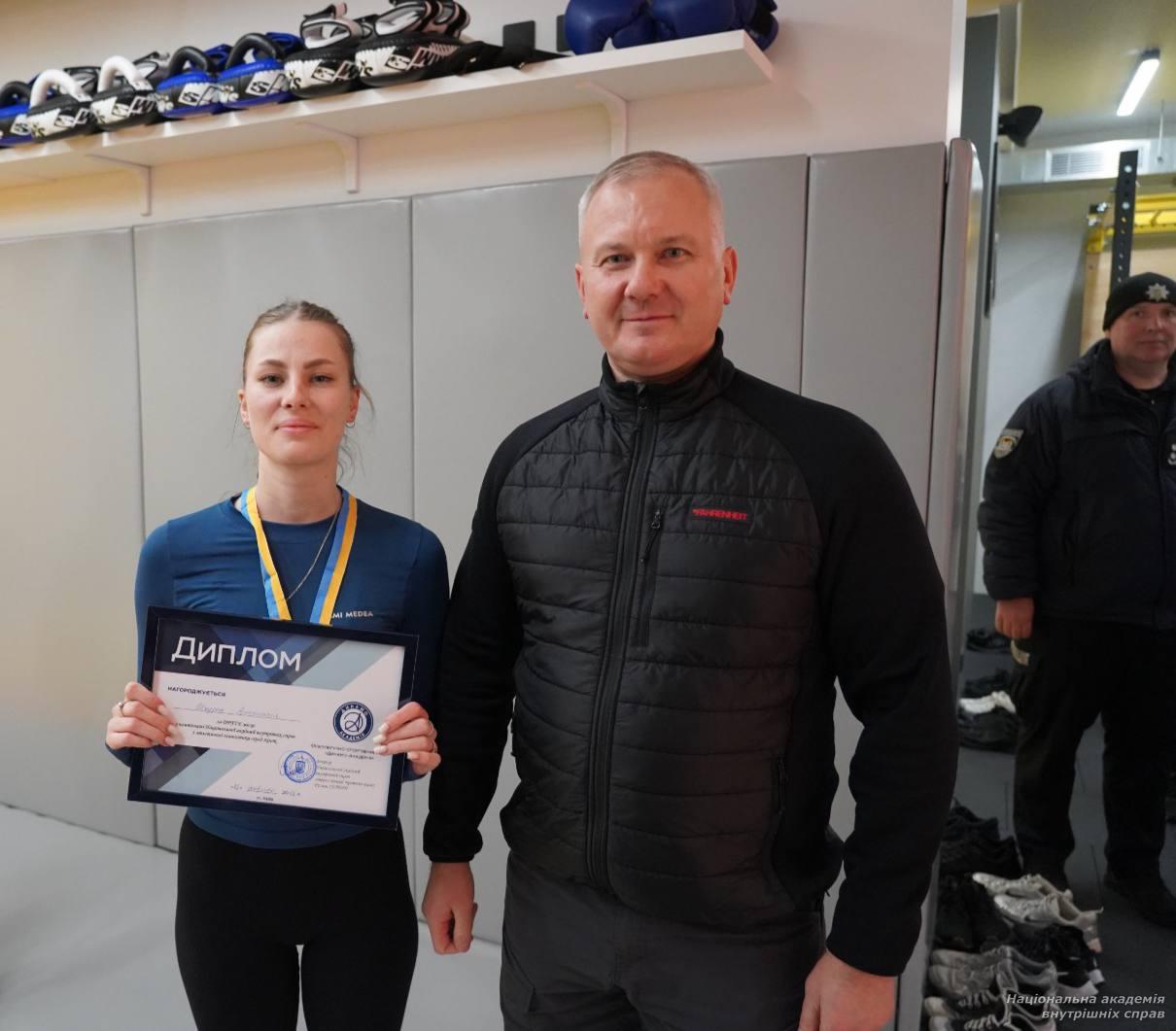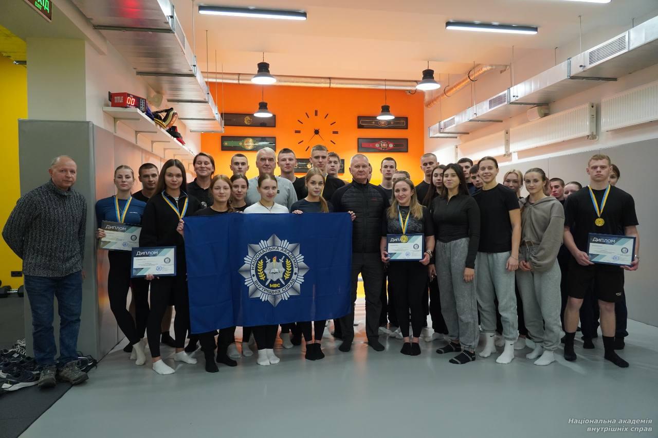 ✔ I місце – Олександр Мицюк, курсант 3 курсу, рядовий поліції (ННІПД); ✔ II місце – Юрій Макарицький, курсант 3 курсу, рядовий поліції (ННЕКІ); ✔ III місце – Сергій Букаєв, курсант 2 курсу, рядовий поліції (ННІПД).Переможців і призерів привітав ректор Національної академії внутрішніх справ генерал поліції третього рангу Руслан Сербин, який наголосив на важливості розвитку спортивного духу, витривалості й командної взаємодії у формуванні майбутніх правоохоронців.