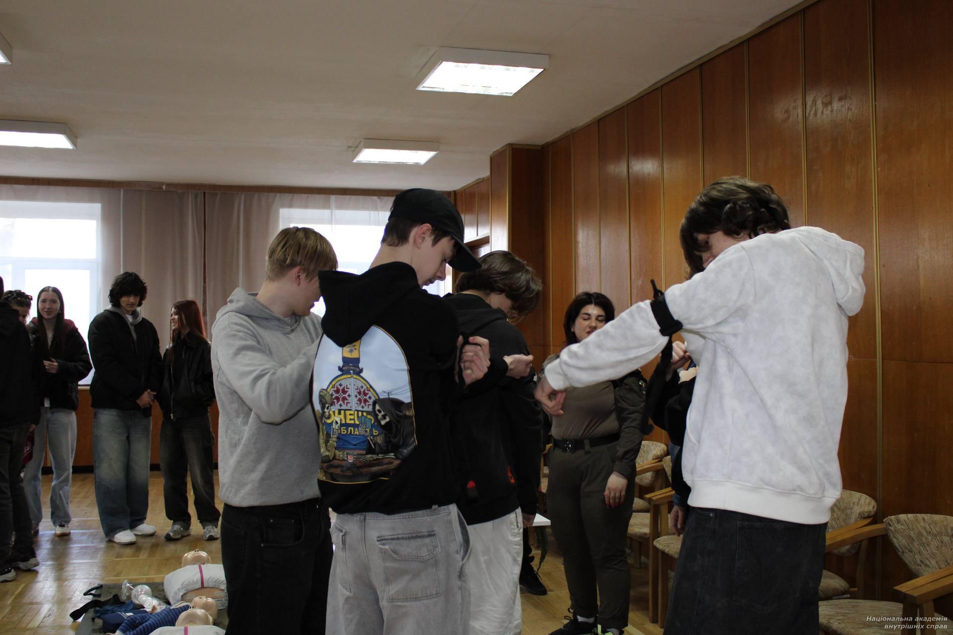 Продовженням стала демонстрація сучасної вогнепальної зброї та спеціальних засобів, що знаходяться на озброєнні підрозділів Національної поліції України. Далі гості ознайомилися з основами домедичної допомоги та вибухотехнічної справи. Кожен охочий мав змогу спробувати зупинити критичну кровотечу на навчальних манекенах або навчитися розпізнавати ознаки вибухонебезпечних предметів.