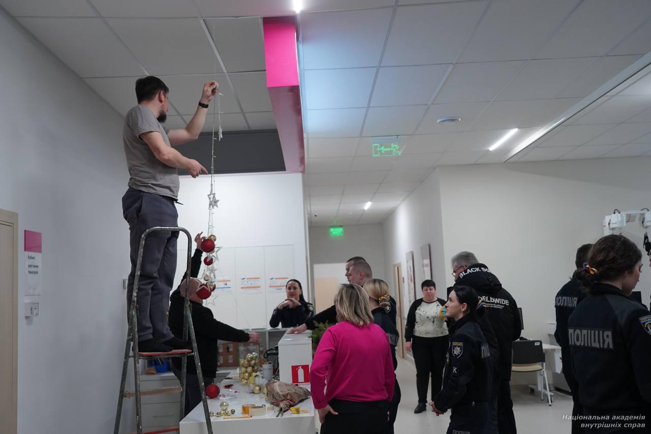 До Дня святого Миколая курсанти НАВС прикрасили святкову залу для бійців у центрі «Recovery»