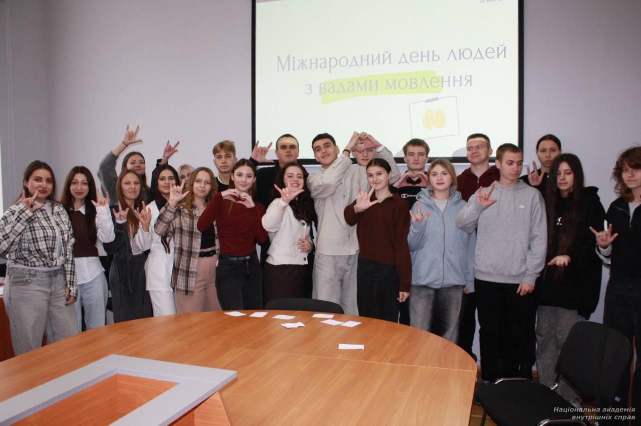Ініціаторами зустрічі стала активна молодь студентського самоврядування інституту, а саме Іван Тропотяга та Надія Артеменко, студенти 1-го курсу навчально-наукового інституту права та психології за спеціальністю «Правоохоронна діяльність». Вони розповіли про те, чому важливо підтримувати людей із порушенням мовлення, як правильно комунікувати з ними та як кожен може долучитися до створення доступнішого середовища для них.