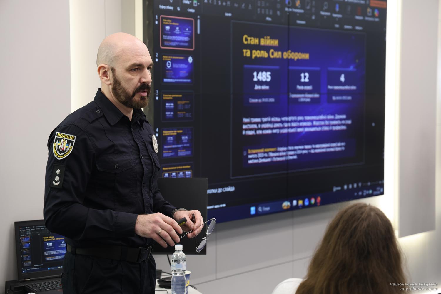 31-03-2026 Переглядів: 28У навчально-науковому інституті права та психології Національної академії внутрішніх справ відбулася лекція за участю старшого слідчого в особливо важливих справах управління документування злочинів, учинених в умовах збройного конфлікту, Головного слідчого управління Національної поліції України підполковника поліції Андрія Корзуна.