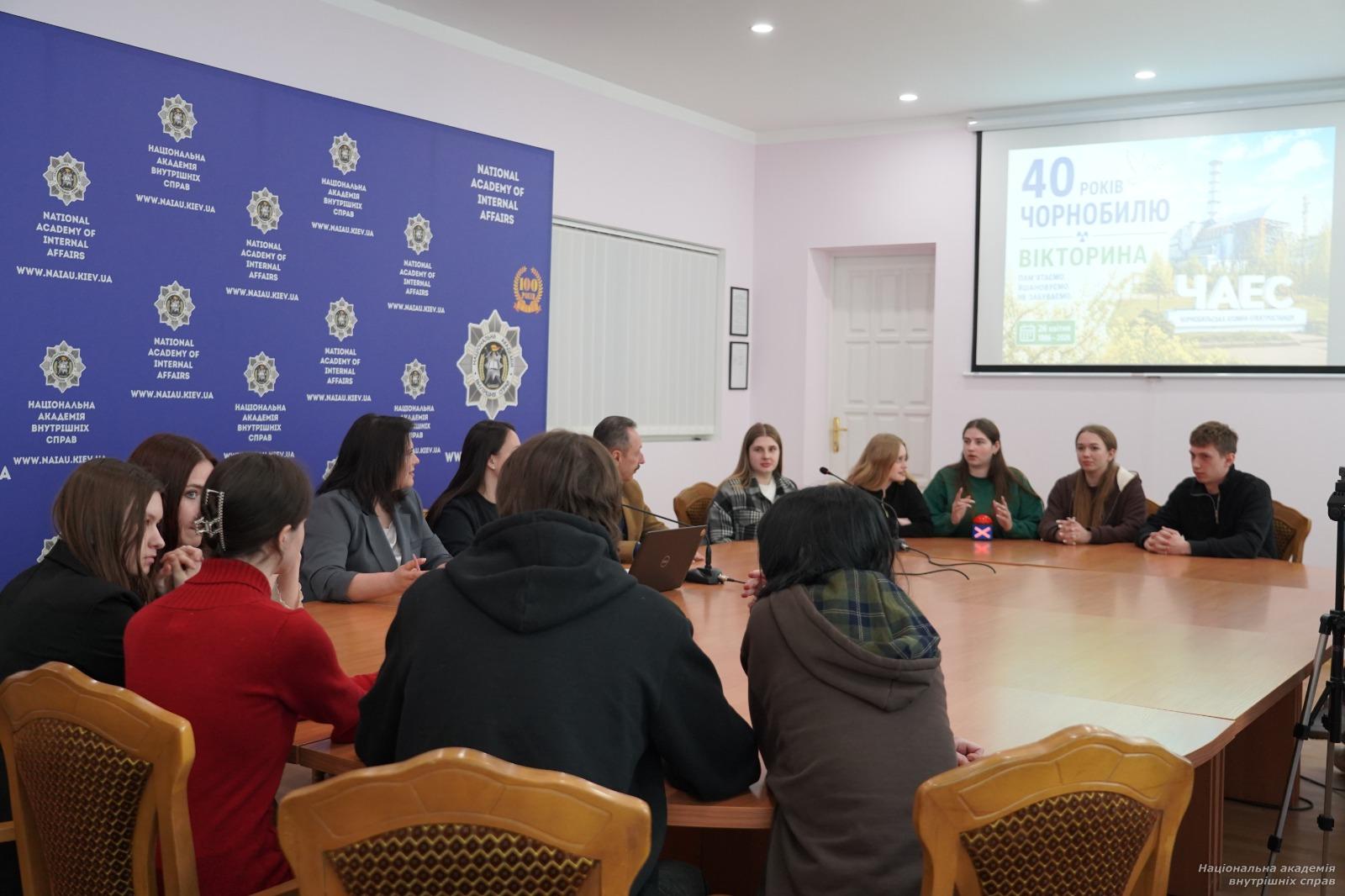 24-04-2026 Переглядів: 68До 40-х роковин Чорнобильської катастрофи кафедра конституційного права навчально-наукового інституту права та психології Національної академії внутрішніх справ провела інтелектуально-пізнавальну вікторину «Чорнобильська катастрофа: права людини в умовах техногенної аварії».