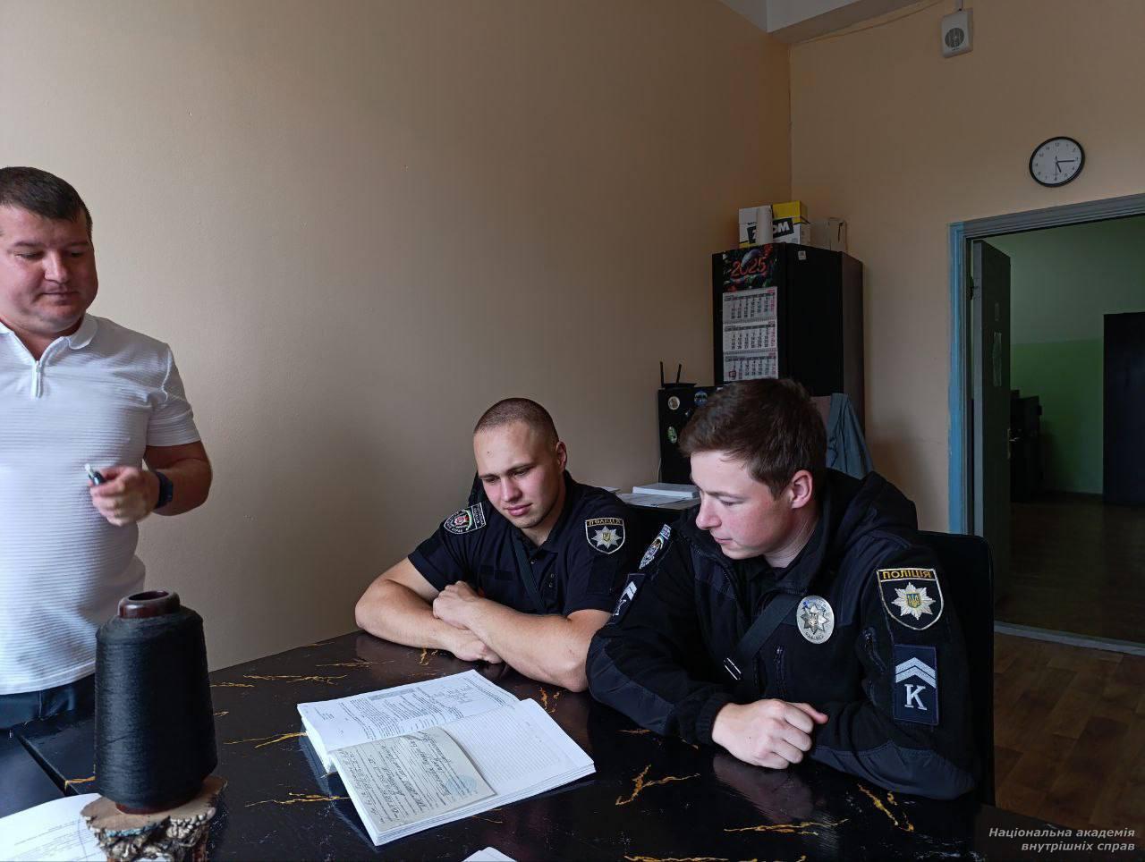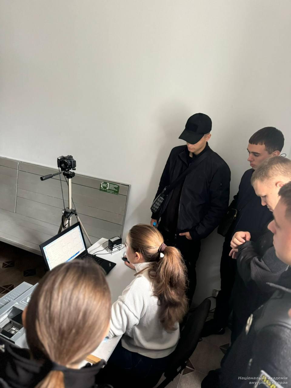 Також курсанти направилися до експертів-криміналістів, де детально ознайомилися з роботою криміналіста, обговорили взаємодію експерта зі слідчим під час виїзду в складі СОГ, ознайомилися з криміналістичною валізою та опрацювали порядок вилучення, пакування і транспортування речових доказів; розібрали прийоми та методи вилучення доказів. Окремо курсантам продемонстрували тактику виявлення і зняття відбитків пальців за допомогою дактилоскопічного порошку.