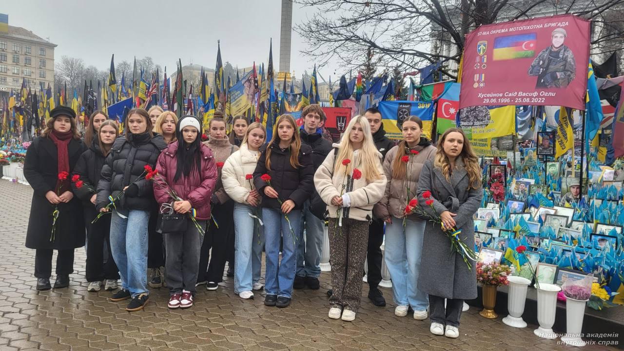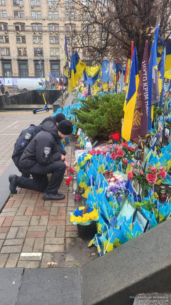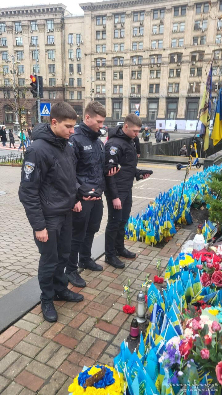 На Майдані Незалежності біля меморіалів Революції Гідності курсанти поклали квіти та схилили голови у хвилині мовчання. Для молоді, яка сьогодні обирає шлях служіння державі й суспільству, це не формальність, а важливий акт пам’яті й усвідомлення власної відповідальності.