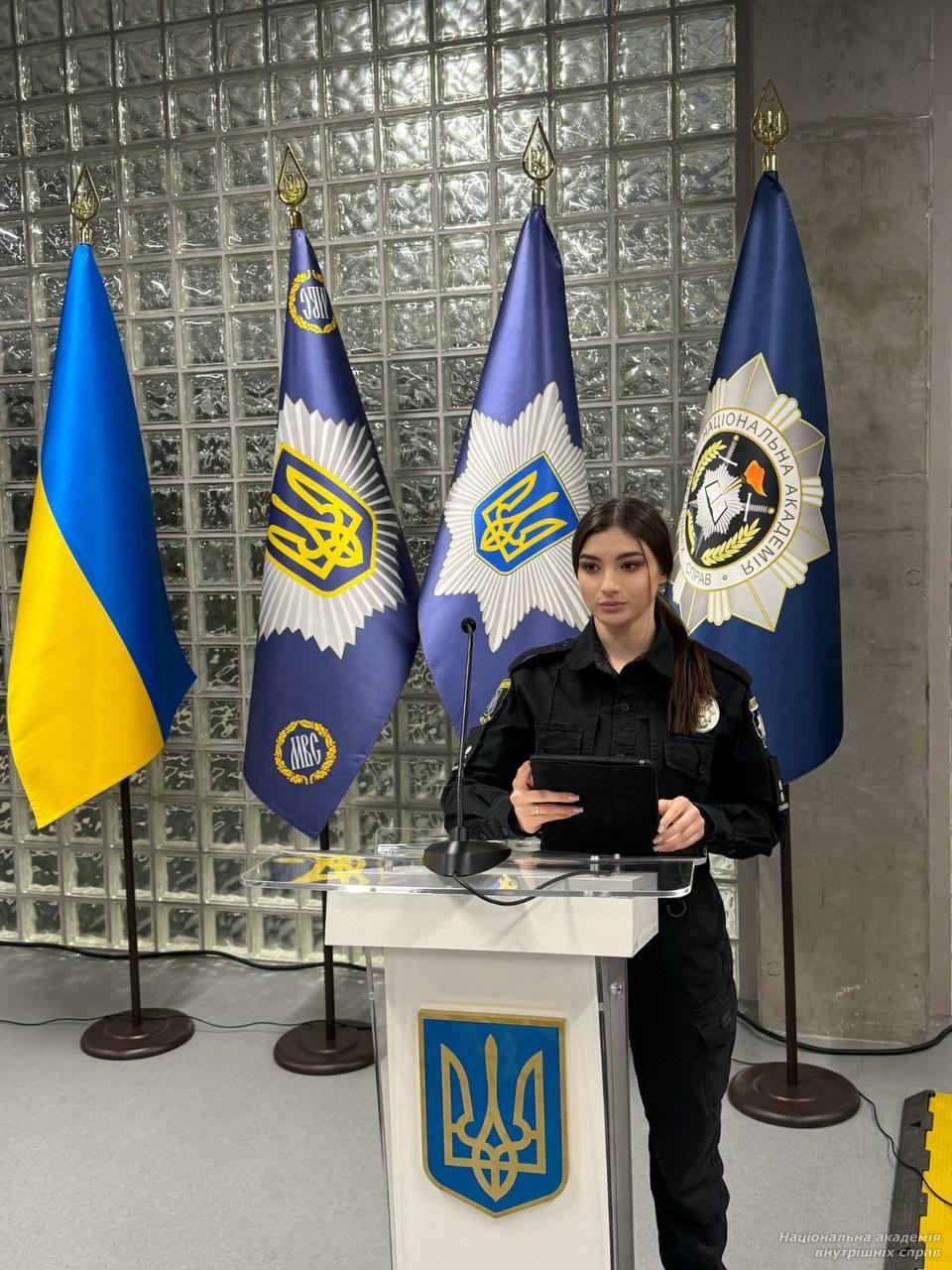 27-11-2025 Переглядів: 25Днями в межах поглиблення правової культури та формування професійних компетентностей майбутніх правоохоронців за ініціативою кафедри теорії, історії та філософії права в навчально-науковому інституті поліцейської діяльності НАВС відбулася змістовна зустріч курсантів з інспектором сектору дотримання прав людини Печерського УП ГУНП у м. Києві лейтенантом поліції Людмилою Мамедовою. Тема заходу – «Роль Національної поліції України в механізмі держави щодо забезпечення дотримання прав людини».