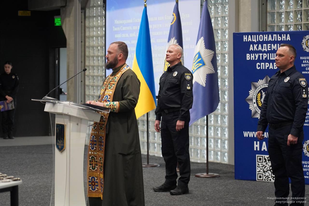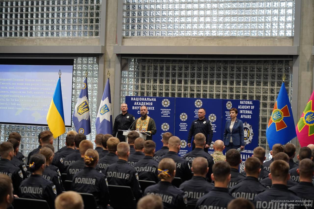 З вітальними промовами до курсантів звернулися Державний секретар МВС Інна Ящук, Голова Національної поліції України генерал поліції другого рангу Іван Вигівський, а також ректор академії генерал поліції третього рангу Руслан Сербин. Духовні настанови першокурсникам висловив начальник служби військового капеланства Національної гвардії України отець Юрій Борис.