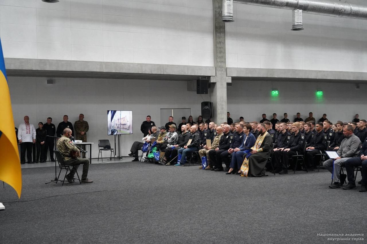 Завершилася церемонія музично-мистецькою програмою: виступом ветерана війни Тараса Козуба, авторським віршем курсантки Софії Коваль і піснею «Бути щасливими» у виконанні студентів та курсантів НАВС.