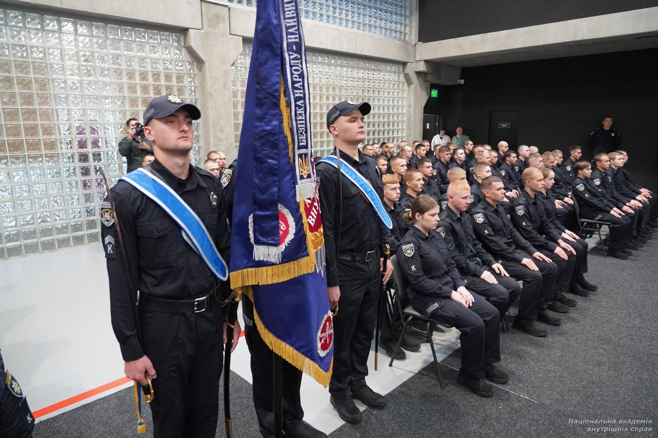 Текст Присяги урочисто виголосив курсант першого курсу Ростислав Ергешов, батько якого загинув, захищаючи Україну на Донеччині, за що був посмертно нагороджений орденом «За мужність» ІІІ ступеня. Після цього першокурсники отримали службові жетони поліцейських.