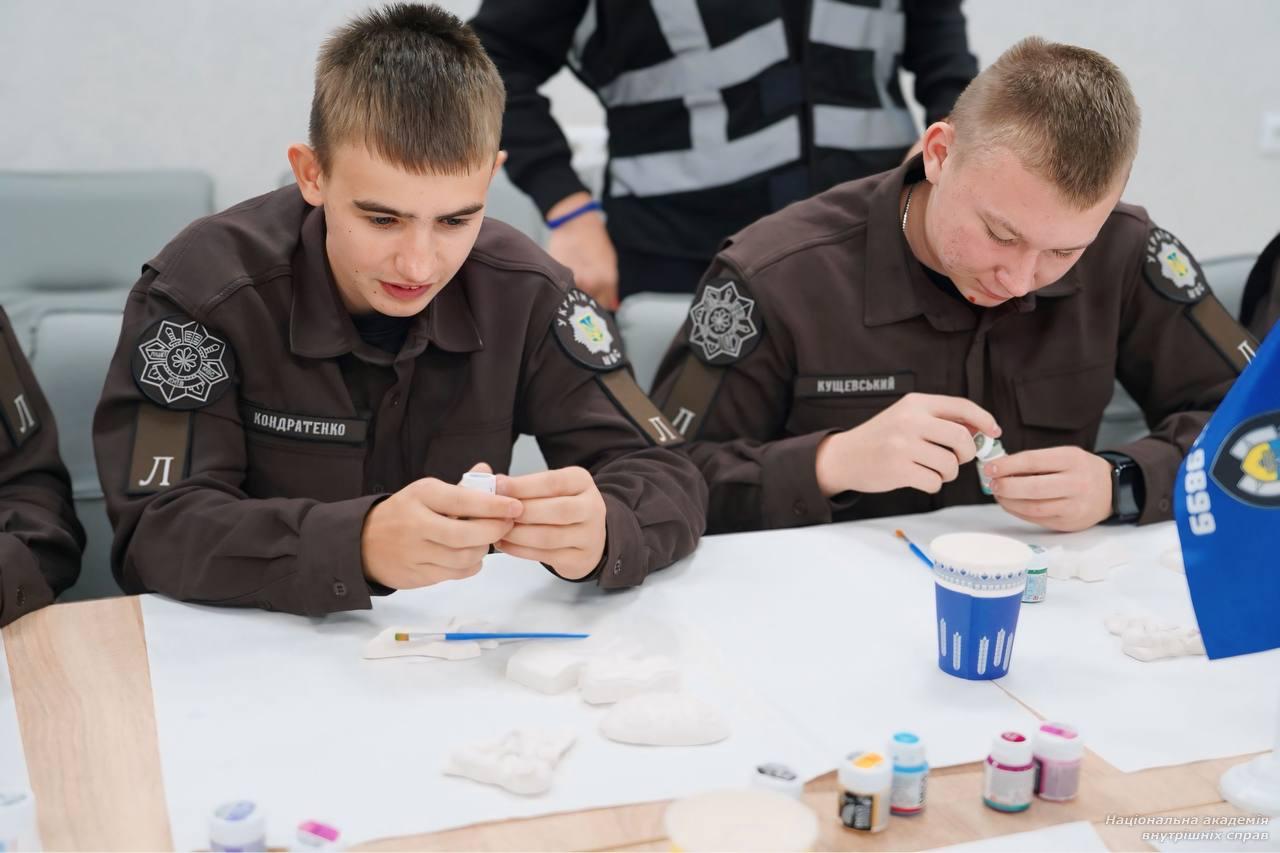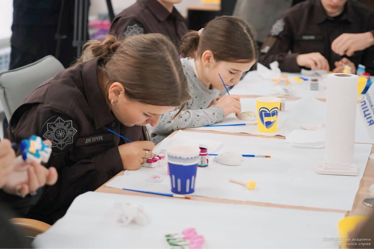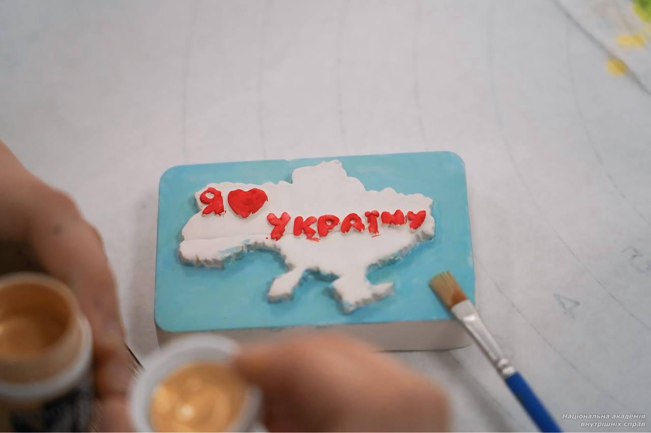 Разом із психологами Поліції охорони та професійною художницею й автотерапевткою Світланою Донцовою підлітки розмальовували гіпсові фігурки. Кожен мав можливість створити кілька виробів, які згодом будуть поєднані в спільну картину з аплікацій. На полотні хлопці й дівчата залишили власні підписи та побажання для України. Закономірно, що всі вони зводилися до одного — перемоги нашої країни над ворогом і миру.