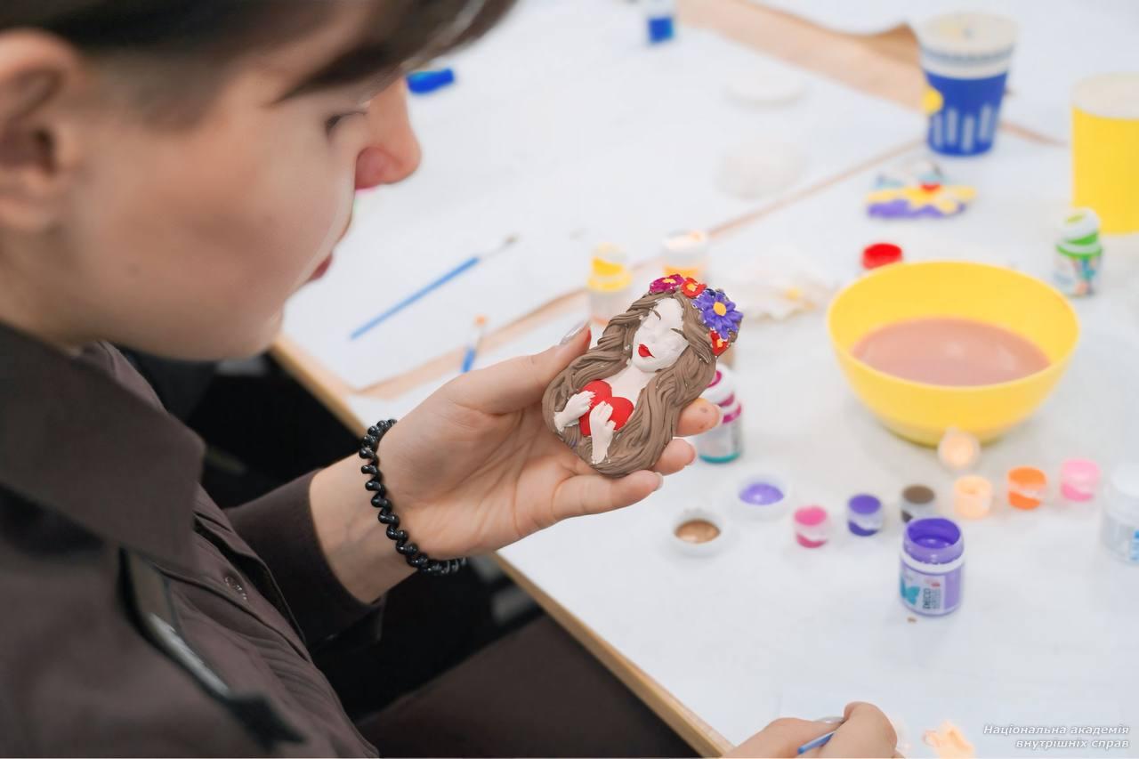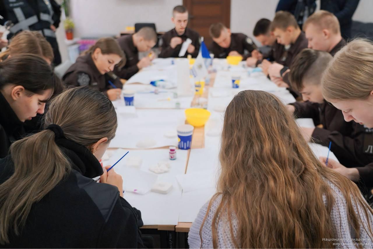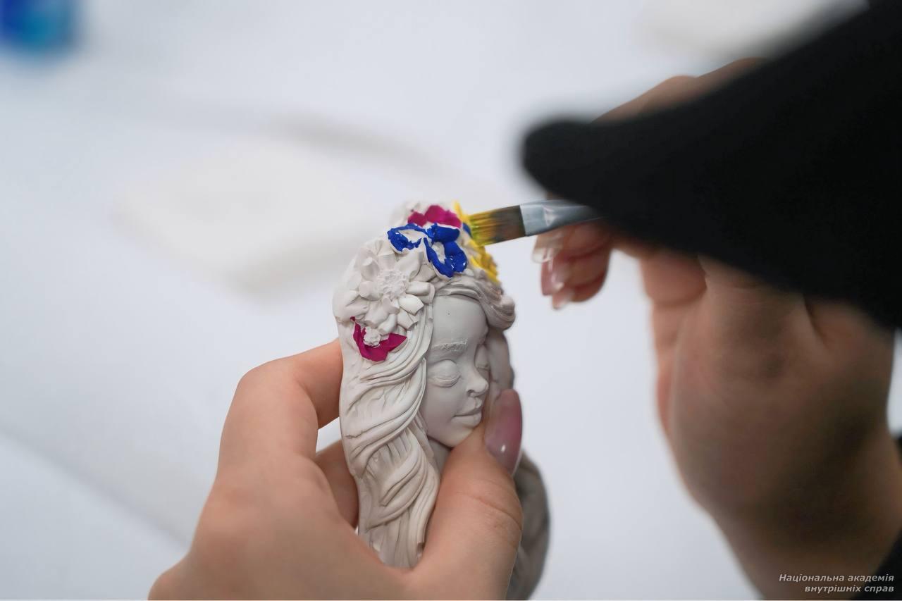 Разом із психологами Поліції охорони та професійною художницею й автотерапевткою Світланою Донцовою підлітки розмальовували гіпсові фігурки. Кожен мав можливість створити кілька виробів, які згодом будуть поєднані в спільну картину з аплікацій. На полотні хлопці й дівчата залишили власні підписи та побажання для України. Закономірно, що всі вони зводилися до одного — перемоги нашої країни над ворогом і миру.