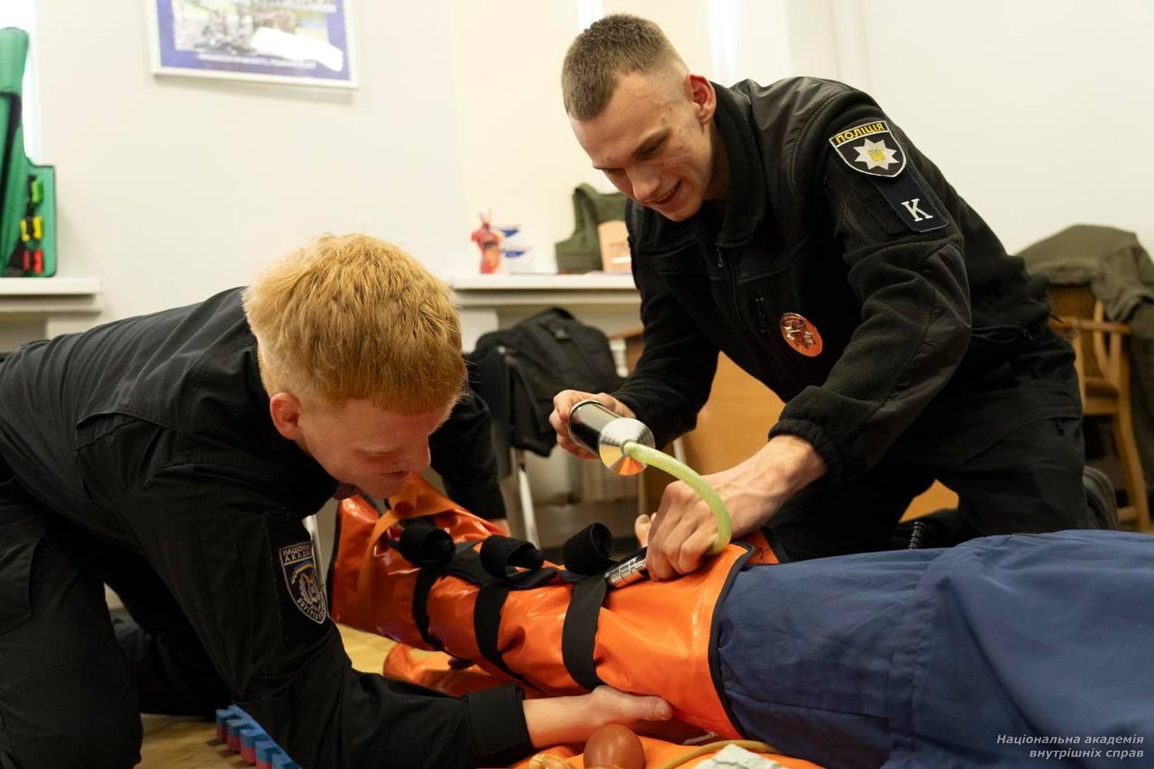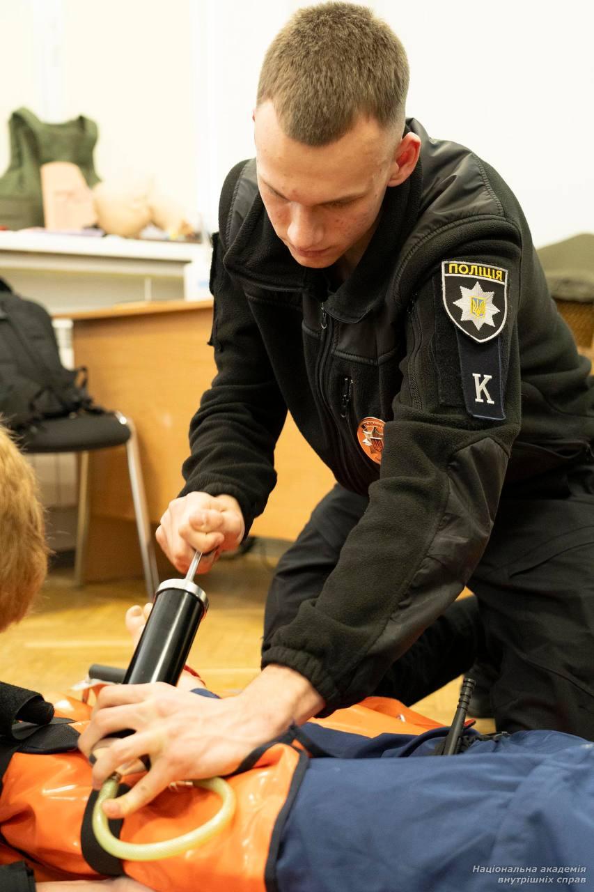 Також здобувачі поглибили знання із застосування індивідуальної аптечки поліцейського.