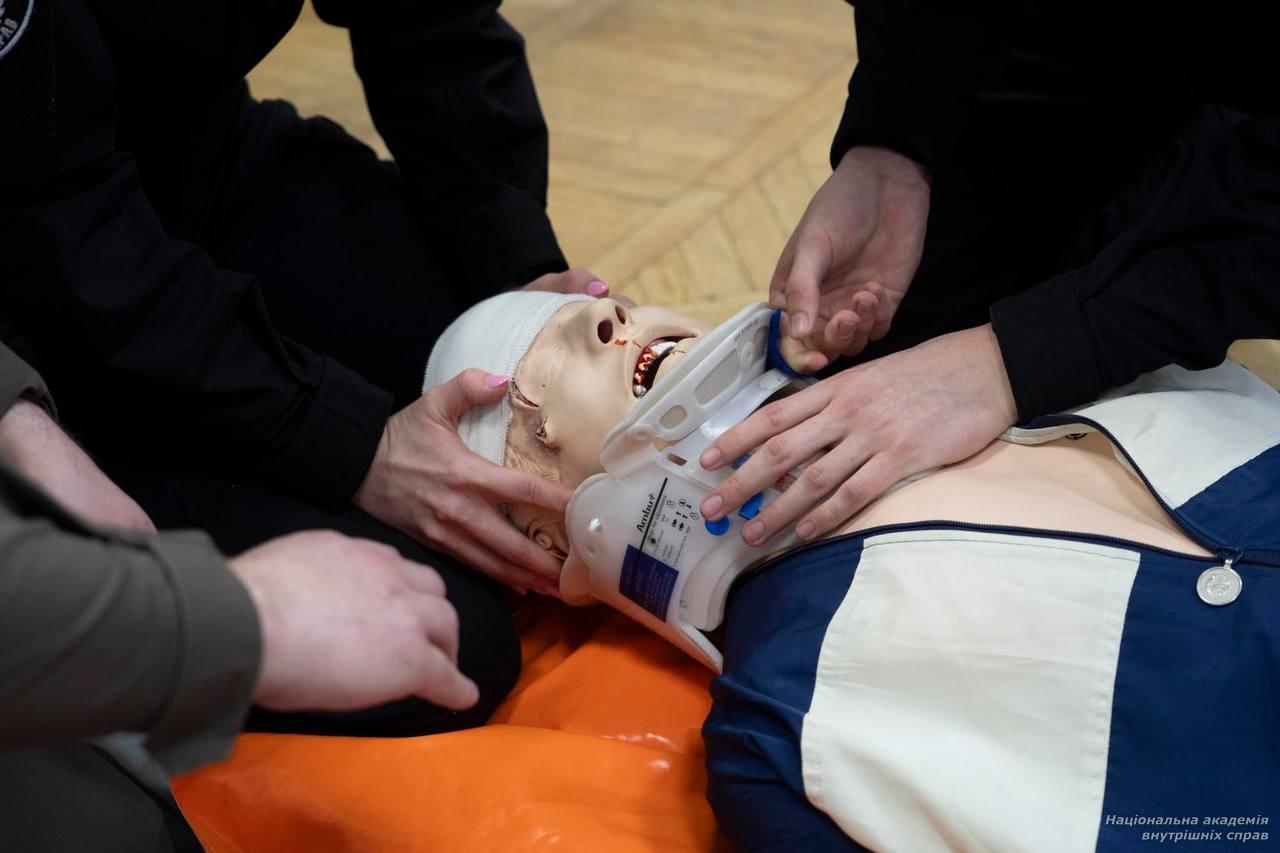 Курсанти вчилися надавати першу допомогу, оцінювали стан потерпілого для стабілізації його життєвих функцій, застосування алгоритму "MARCH", комунікації та координації на місці подій, що передбачає організацію евакуації та передання інформації.
