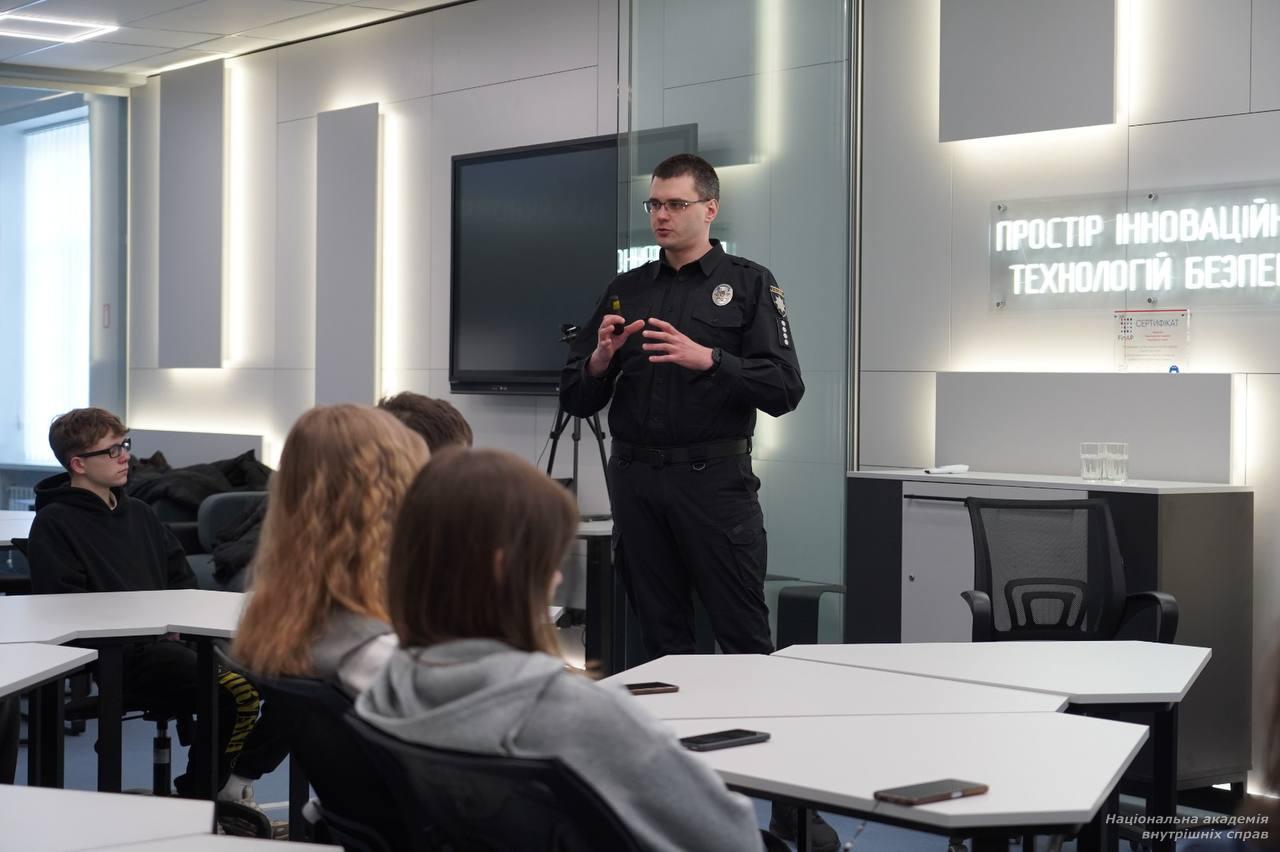 Важливою частиною візиту стала лекція завідувача кафедри кримінології та інформаційних технологій капітана поліції Владислава Школьнікова про інформаційну гігієну та кібербезпеку. Студентам розповіли про сучасні схеми онлайн-шахрайства та способи їх попередження. Лекція проходила у форматі відкритого діалогу.