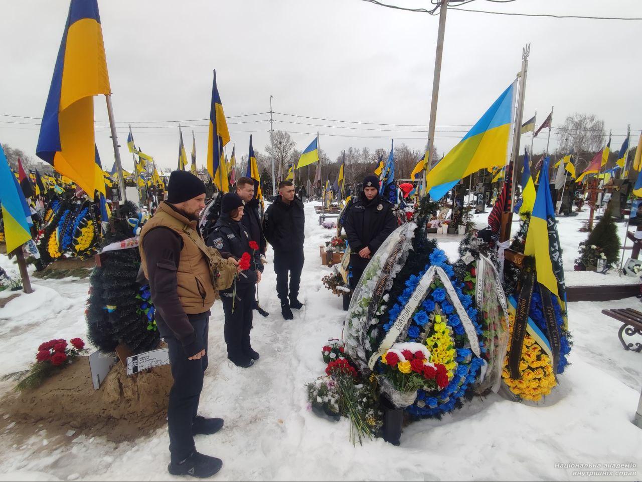 Керівництво інституту, викладачі та курсанти попрямували до місць останнього спочинку своїх побратимів — випускників інституту, які загинули, захищаючи незалежність і територіальну цілісність України. Хвилина мовчання біля свіжих могил молодих героїв, які нещодавно сиділи за тими партами, стала найкрасномовнішим свідченням нерозривності поколінь.