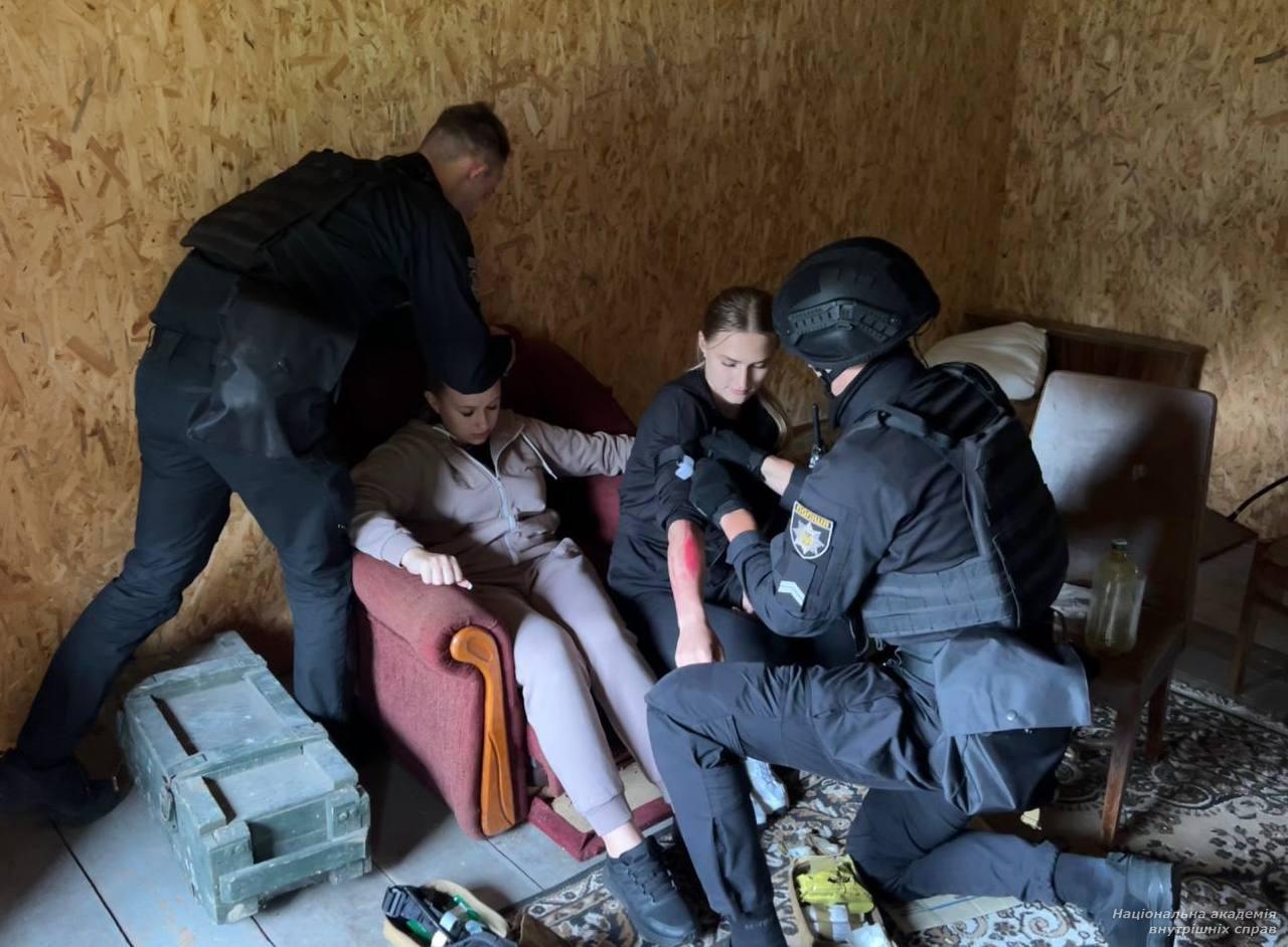 Практична частина охоплювала моделювання реальних викликів: оцінювання ризиків, забезпечення охорони місця події, евакуацію мешканців, надання домедичної допомоги, роботу мобільного пункту поліції та використання БПЛА для розвідки і фіксації небезпечних елементів. Сценарій також передбачав повторну атаку ворожого дрона з пораненням співробітників поліції та рятувальників.