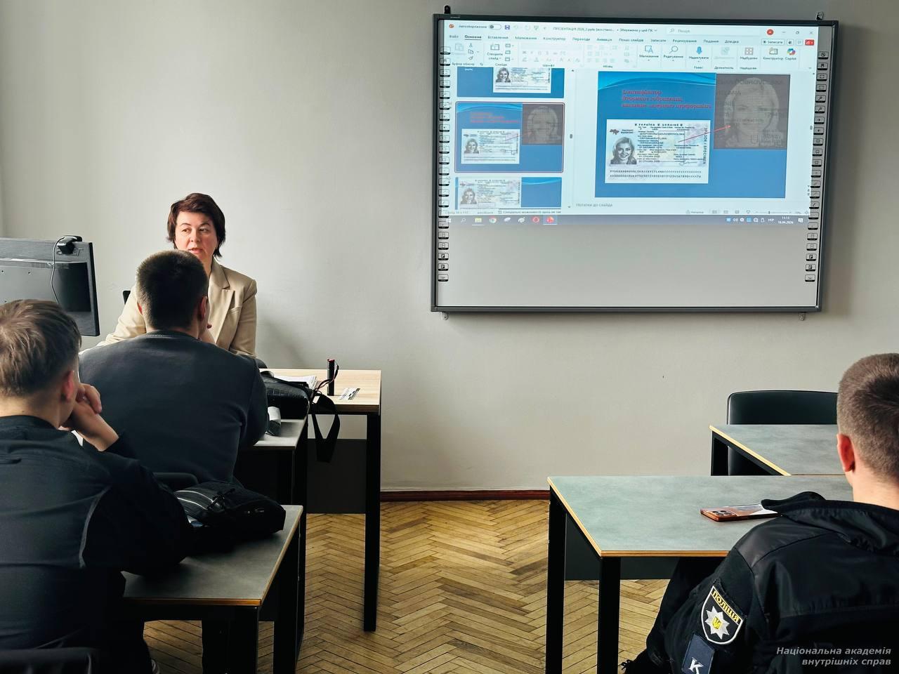 Під час заняття курсанти поглибили свої знання щодо сучасних методів ідентифікації особи, ознак підроблення документів і способів їх виявлення. Увагу було спрямовано на практичну складову: здобувачі освіти мали змогу працювати зі зразками документів, аналізувати їх за допомогою спеціального технічного обладнання, а також ознайомитися з реальними кейсами з експертної та слідчої практики.