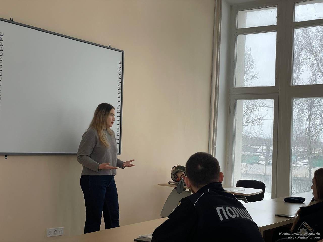 Заняття провела психолог відділення психологічного забезпечення НАВС Таїсія Рощупкіна за сприяння викладача циклу підготовки саперів Центру розмінування Лейли Джафарової.