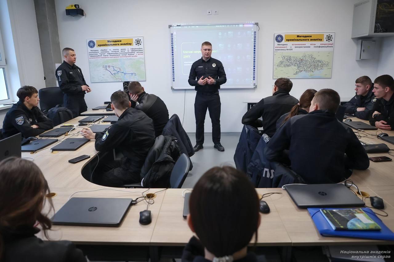 Практичними аспектами роботи поділився т.в.о. першого заступника начальника Департаменту міжнародного поліцейського співробітництва Національної поліції України Євгеній Панченко. Участь у лекції взяли курсанти випускного курсу спеціальності «Правоохоронна діяльність», які проходять підготовку для подальшої служби в підрозділах протидії наркозлочинності.