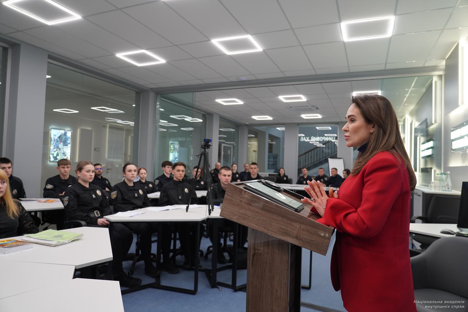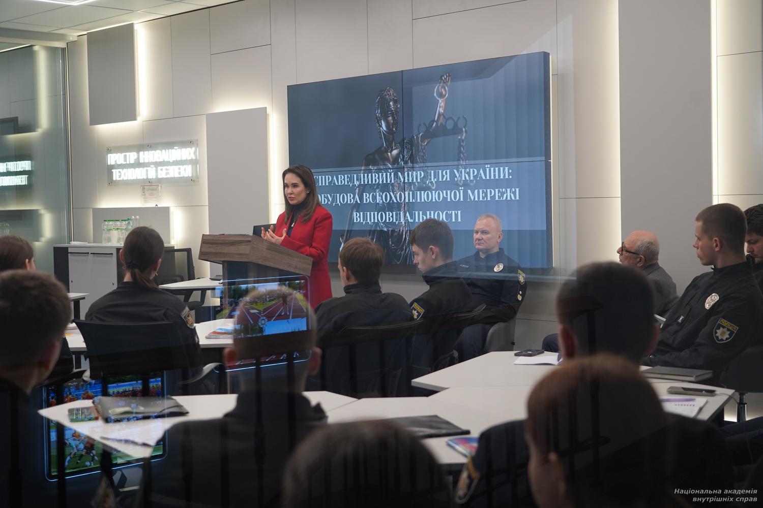 Ця тебе набула особливого звучання саме в аудиторії майбутніх офіцерів: міжнародне правосуддя починається не в Гаазі й не в Страсбурзі, воно починається на місці злочину, з належно зібраного доказу, задокументованого порушення, захищеного свідка. Перша ланка цього ланцюга — співробітник поліції. Саме від його професіоналізму залежить, чи стане зібране доказом у міжнародному суді.