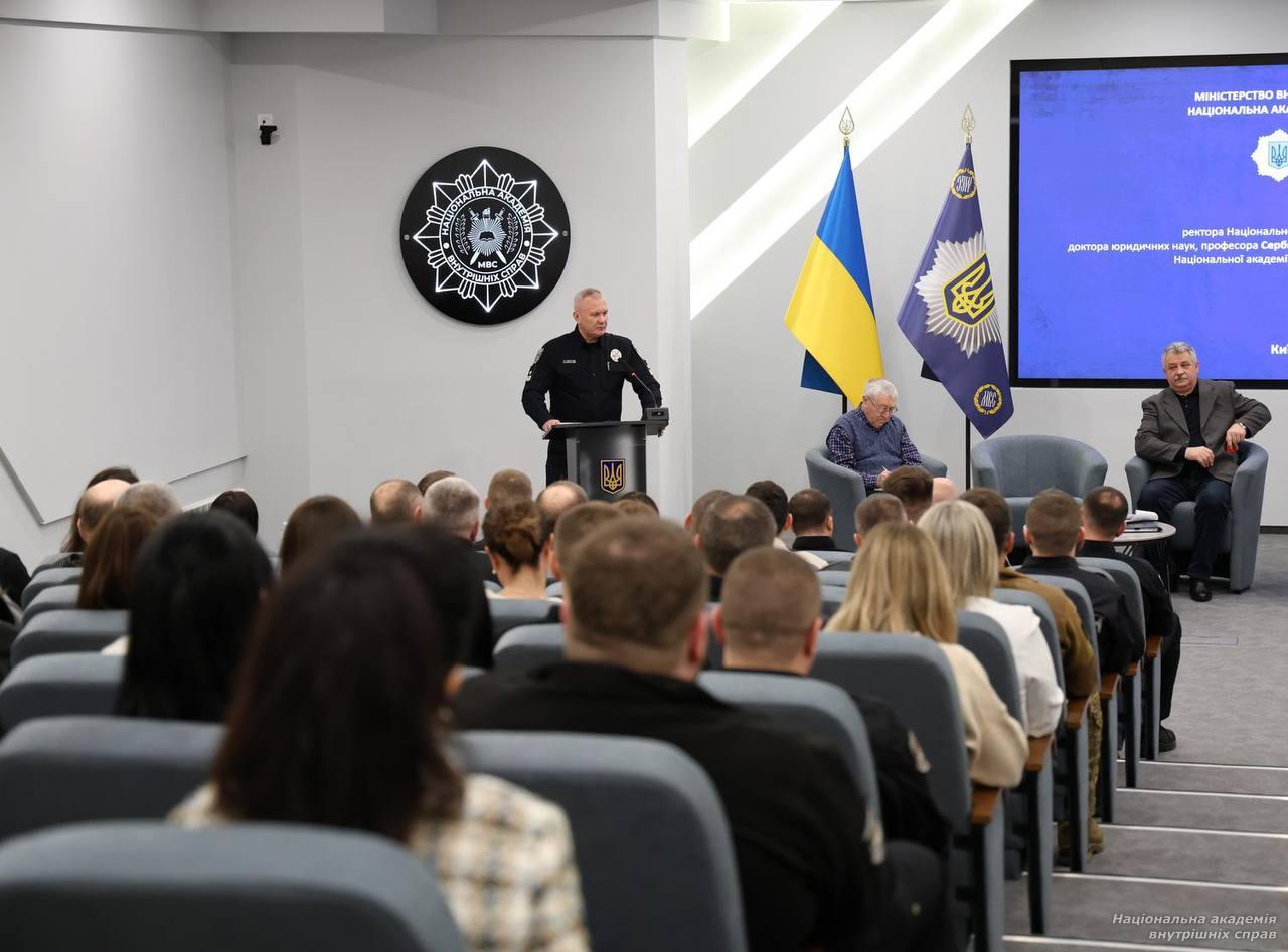На початку виступу ректор подякував колективу за підтримку та спільну роботу в складних умовах воєнного стану. Він зауважив, що 2025 рік став для академії періодом інтенсивних змін, управлінського оновлення та посилення практичної складової підготовки майбутніх правоохоронців.