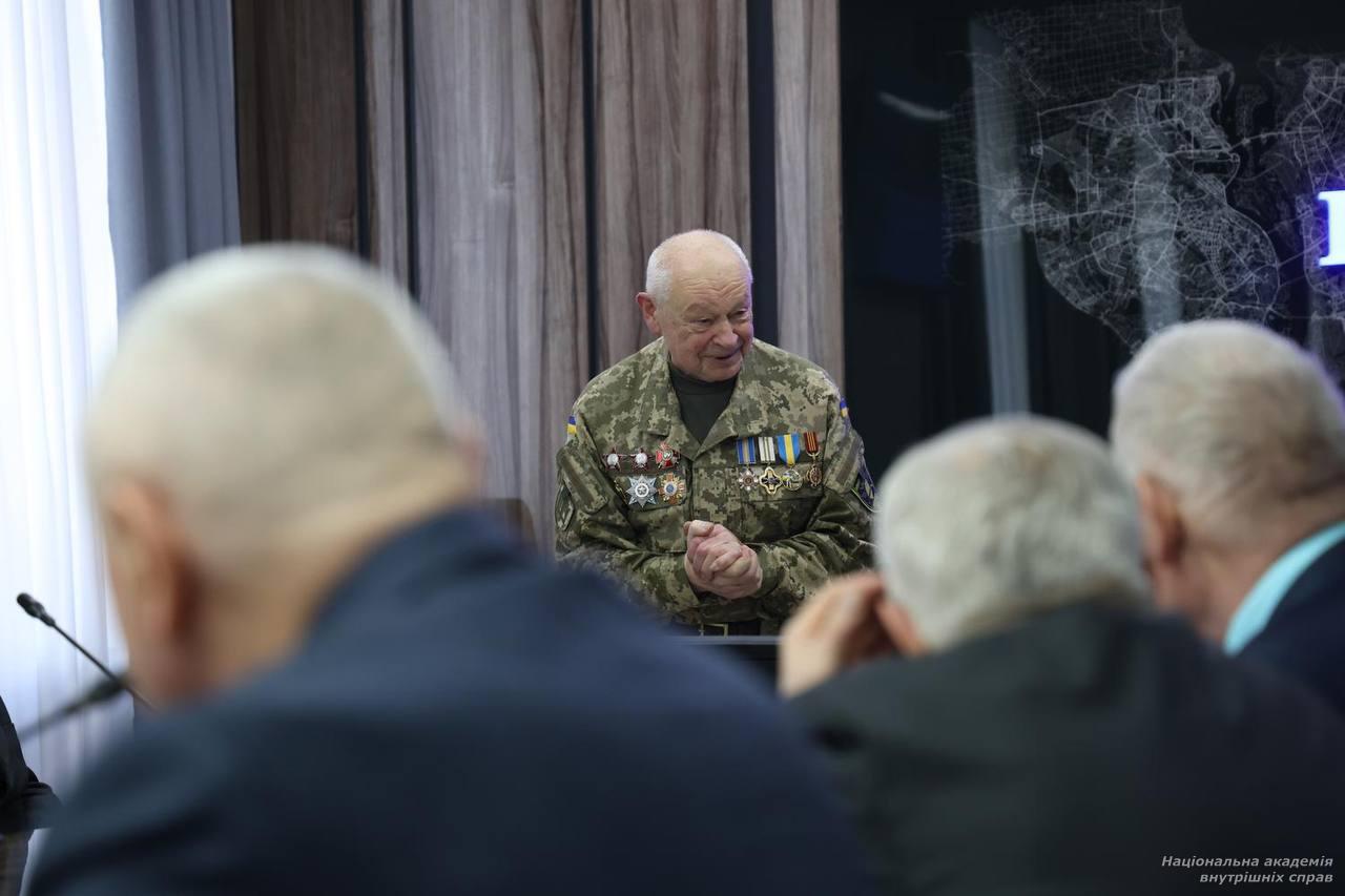 У вітальному слові ректор генерал поліції третього рангу Руслан Сербин зазначив, що академія віддає шану тим, хто віддано виконував військовий обов’язок у «гарячих точках» світу – від Афганістану до Косово та Югославії. Він відзначив мужність, професіоналізм і вірність Присязі ветеранів, що є прикладом для поліцейських і курсантів академії.