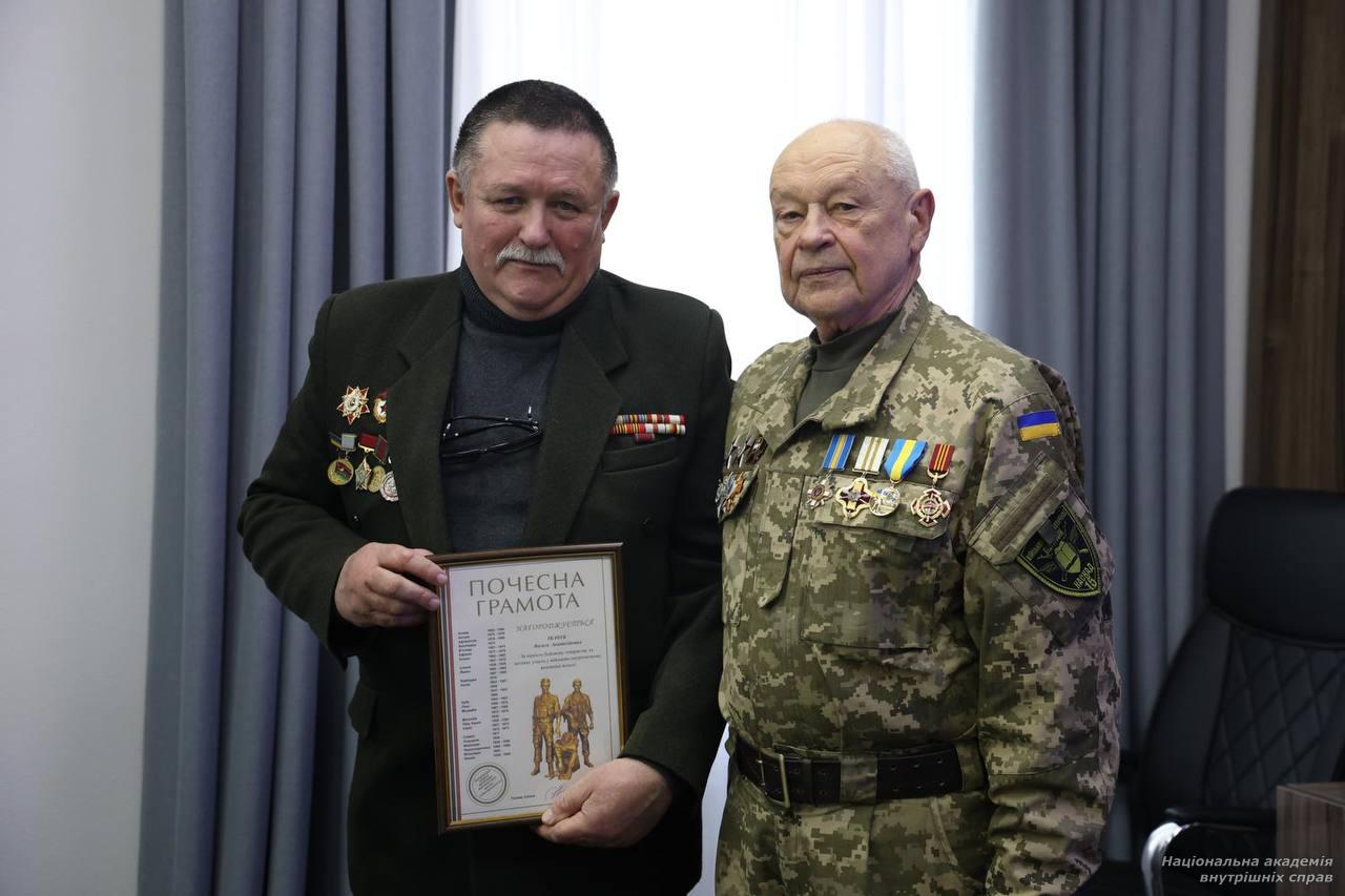 Грамоти, подяки та медалі ветеранам вручали ректор і почесні гості: Анатолій Карацюба, заступник голови Ради ГО «Асоціація ветеранів МВС України», Віталій Волик, член Ради ГО «Асоціація ветеранів МВС України», Голова Координаційної Ради ветеранів Афганістану МВС України.