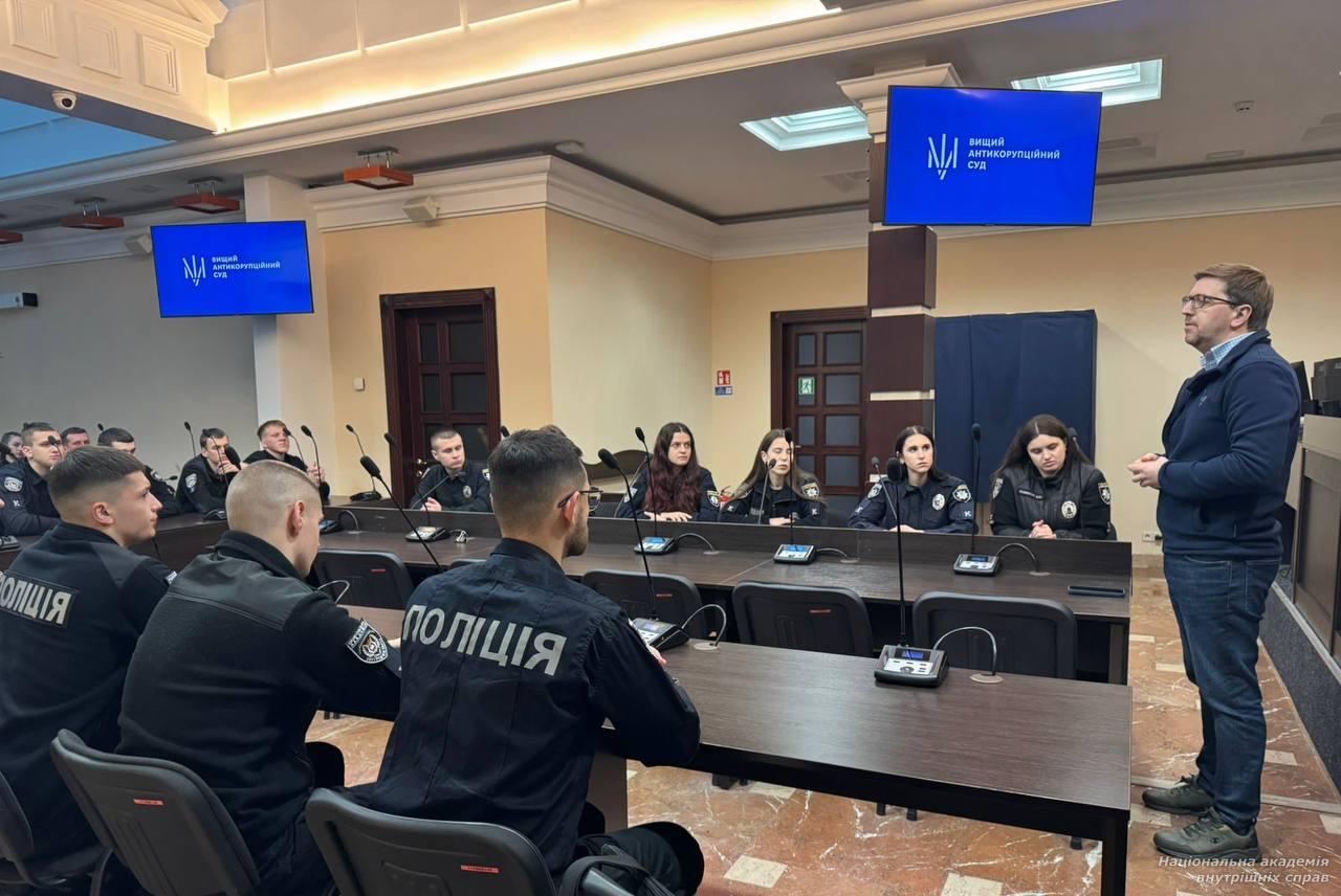 05-12-2025 Переглядів: 125Кафедра кримінального процесу НАВС організувала навчальний візит до Вищого антикорупційного суду ад'юнктів, аспірантів, курсантів і студентів (за спеціальністю «Право»), щоб доповнити теоретичні знання практичними спостереженнями за роботою суду. Цей захід став яскравою ілюстрацією того, як освітній процес може виходити за межі аудиторій, надаючи учасникам можливість безпосередньо ознайомитися із функціонуванням судової установи, її структурою та особливостями розгляду корупційних справ. Для молодих дослідників це була унікальна нагода побачити, як абстрактні норми процесуального права набувають конкретного втілення в щоденній роботі суду.
