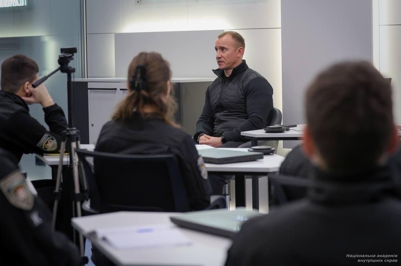 Під час лекції заступник Голови НПУ дав поради курсантам щодо того, як вибудовувати навчання та здобувати практичний досвід у підрозділах Національної поліції. Він закликав не ставитися до стажування формально й наполягати на реальному їх залученні до слідчих та оперативно-розшукових дій. За його словами, саме участь в оглядах місць подій, розслідуванні різних категорій злочинів і спільна робота з оперативниками, криміналістами дає базу, без якої неможливо стати професіоналом.