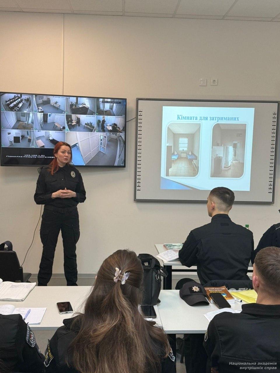 27-03-2026 Переглядів: 119В академії відбувся цикл практико орієнтованих занять за участю начальника сектору дотримання прав людини Голосіївського управління поліції ГУНП у м. Києві майора поліції Олександри Карбовської.
