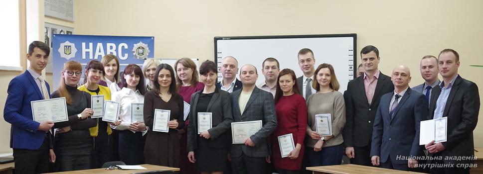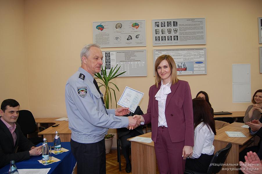 В урочистих заходах брали участь перший проректор, полковник поліції Станіслав Дмитрович Гусарєв, директор інституту підготовки керівних кадрів та підвищення кваліфікації, полковник поліції Лариса Давидівна Удалова, які підвели підсумки навчання, проаналізували важливі моменти пройденого освітнього процесу та вручили свідоцтва про підвищення кваліфікації.