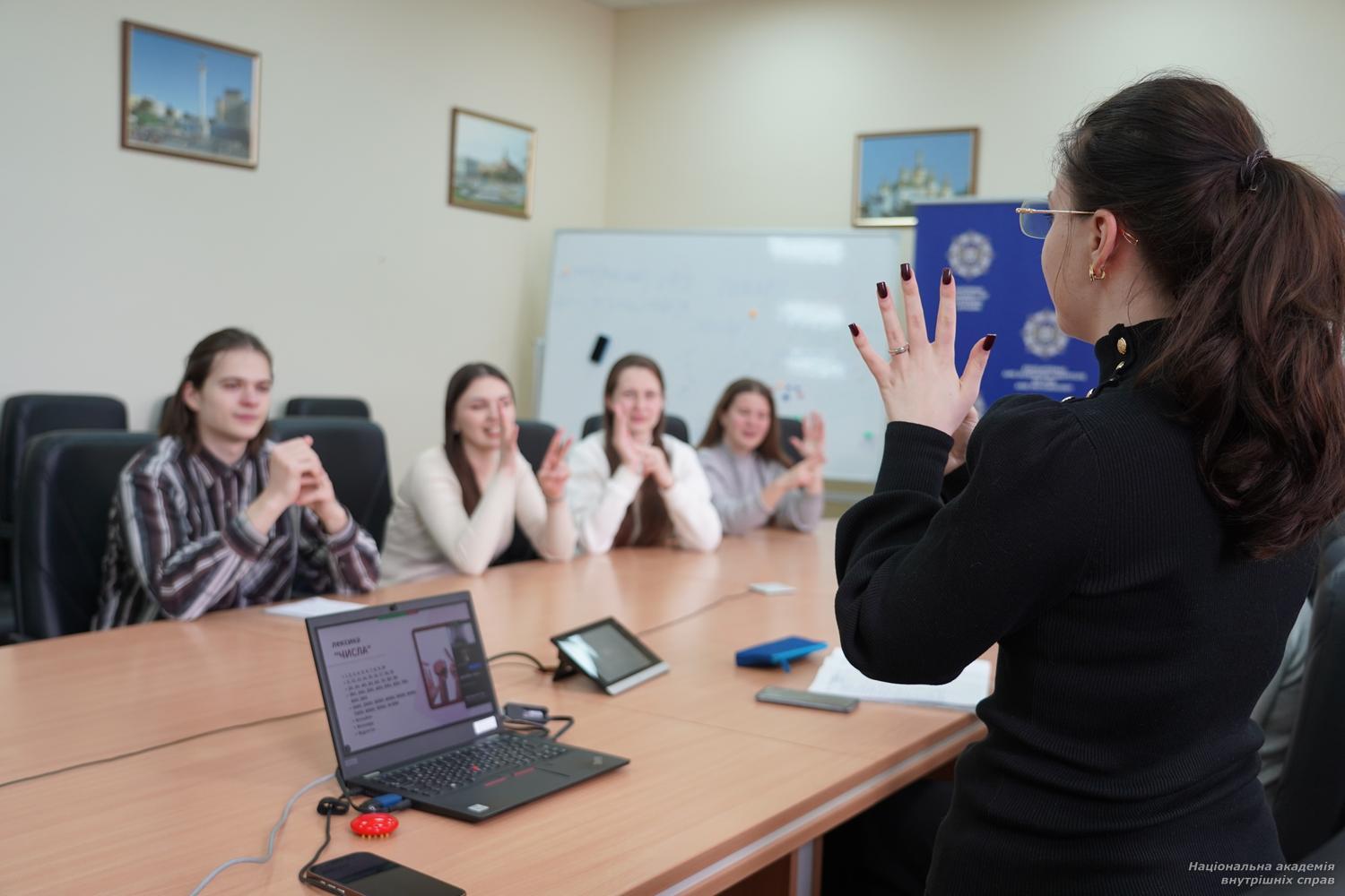 24-04-2026 Переглядів: 3623 квітня в навчально-науковому інституті права та психології НАВС відбулося чергове засідання наукового гуртка «Науковий діалог: мова, жест і право». Захід було проведено у форматі тренінгу з жестової мови «Засади наукових досліджень жестової мови».